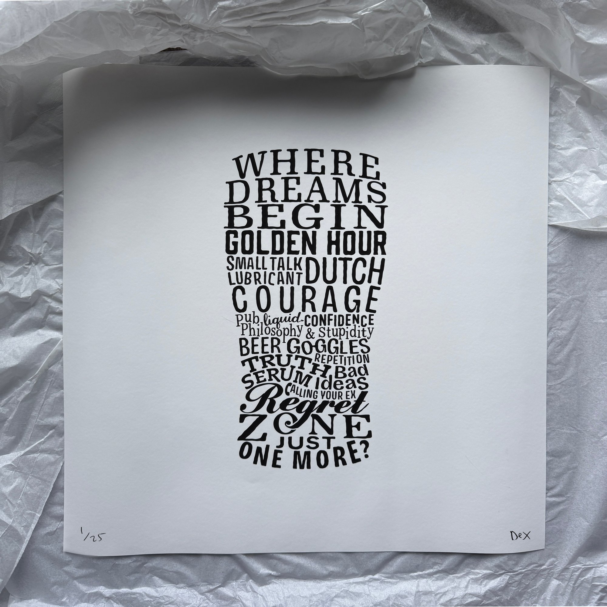A handcrafted typographic print of your favourite amber companion, The Geometry of Beer is a print that dissects the art, science, and existential truth of the humble pint. From top to bottom, it's a night out distilled into one vessel.